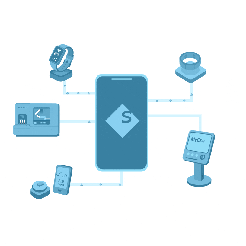 connect with any health data source through our comprehensive APIs. support for oura, fitbit, apple health, garmin, and 50+ platforms. real-time sync and webhook support.